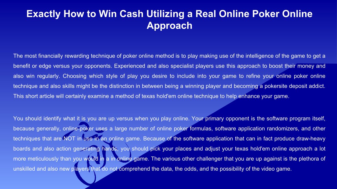 Exactly How to Win Cash Utilizing a Real Online Poker Online Approach