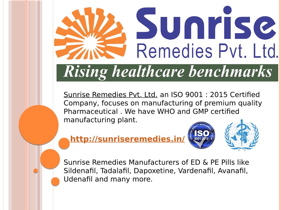 Male ED and PE Pills products manufacturing Comapny - Sunrise Remedies