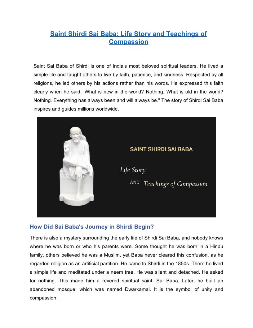 Saint Shirdi Sai Baba - Life Story and Teachings of Compassion