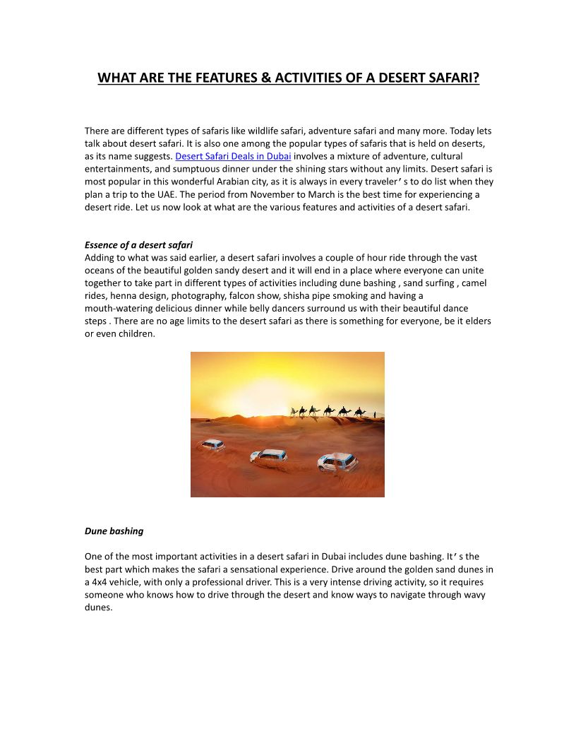 WHAT ARE THE FEATURES & ACTIVITIES OF A DESERT SAFARI