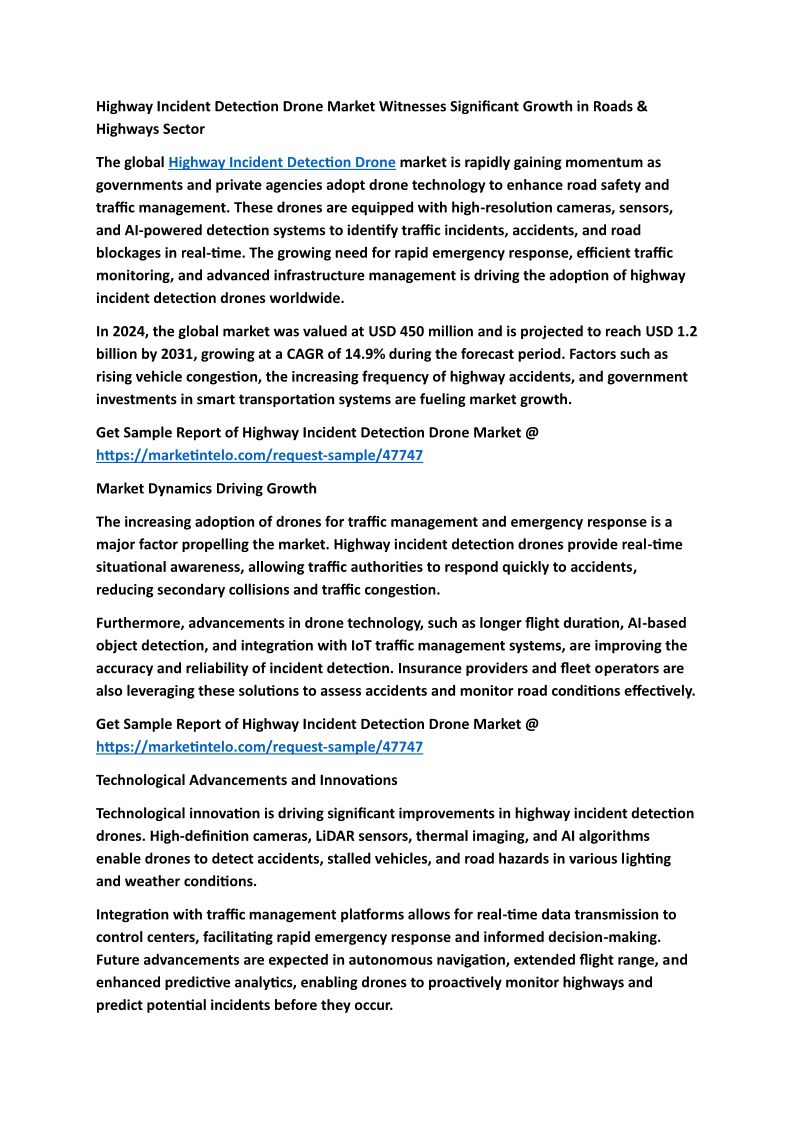 Highway Incident Detection Drone Market Witnesses Significant Growth in Roads & Highways Sector