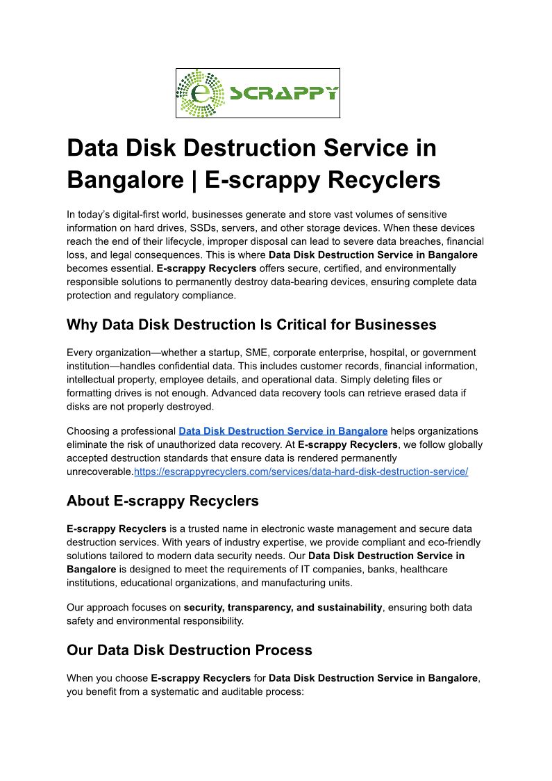 Data Disk Destruction Service in Bangalore _ E-scrappy Recyclers