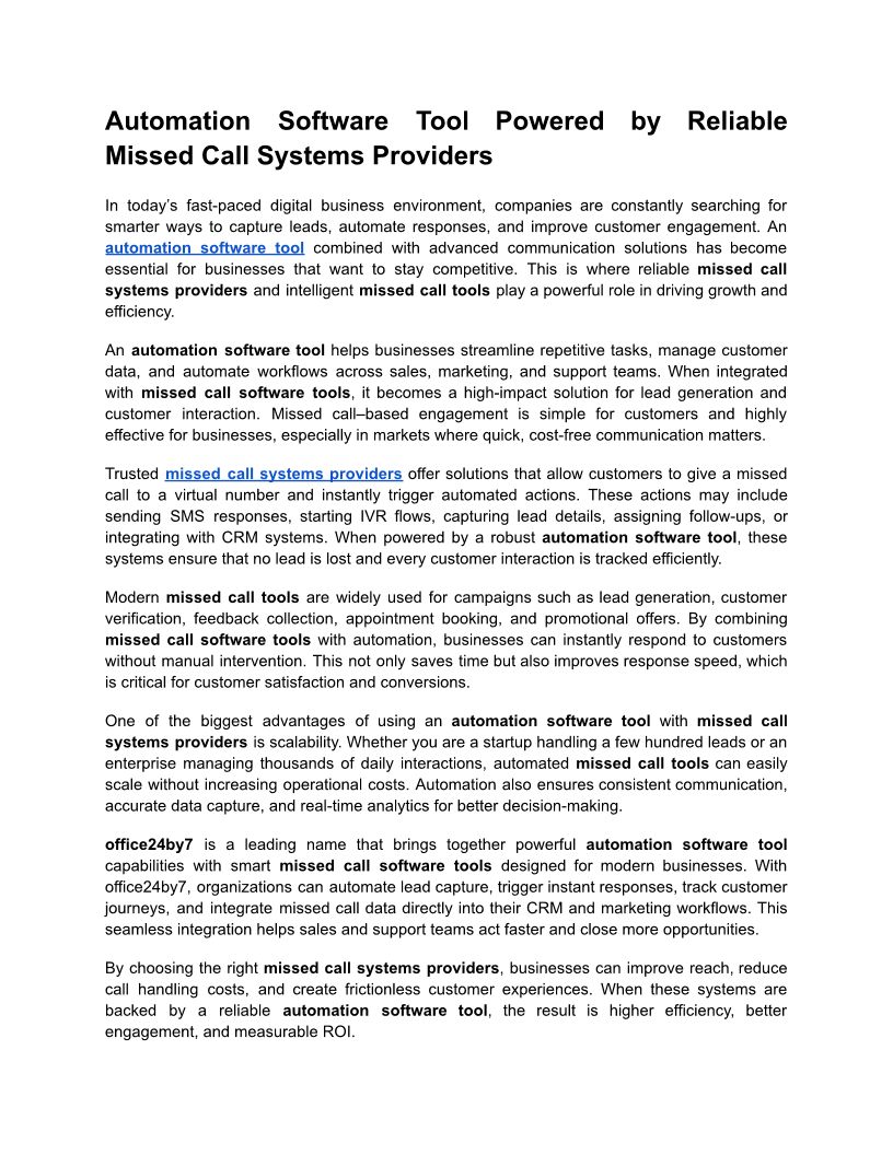 Automation Software Tool Powered by Reliable Missed Call Systems Providers