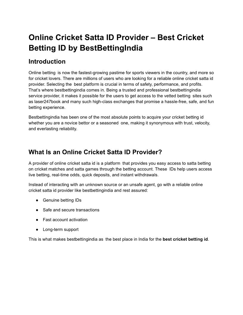 Online Cricket Satta ID Provider – Best Cricket Betting ID by BestBettingIndia