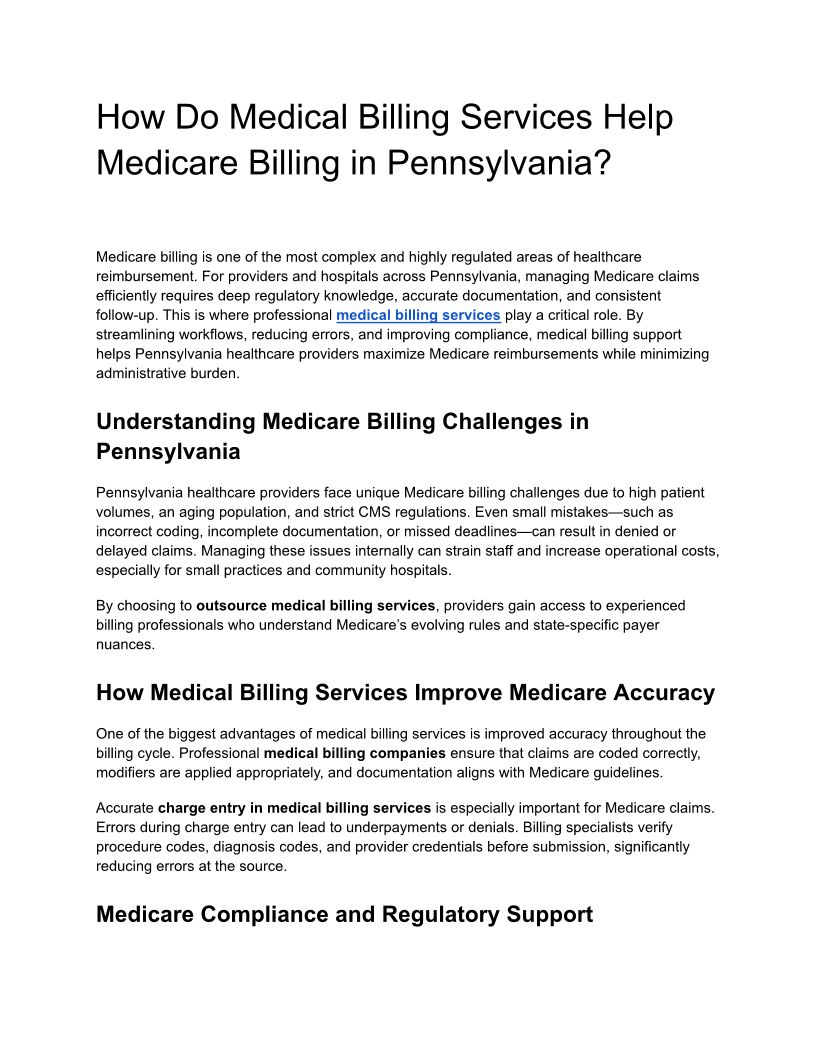 How Do Medical Billing Services Help Medicare Billing in Pennsylvania