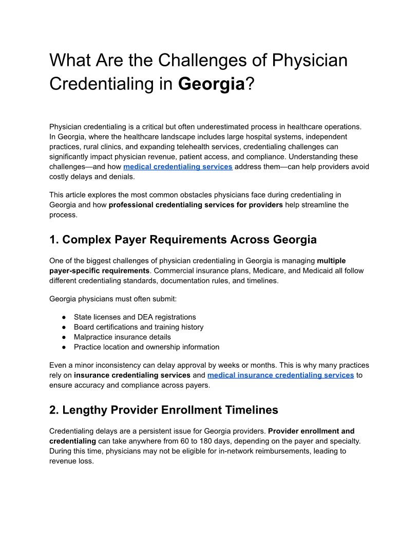 What Are the Challenges of Physician Credentialing in Georgia