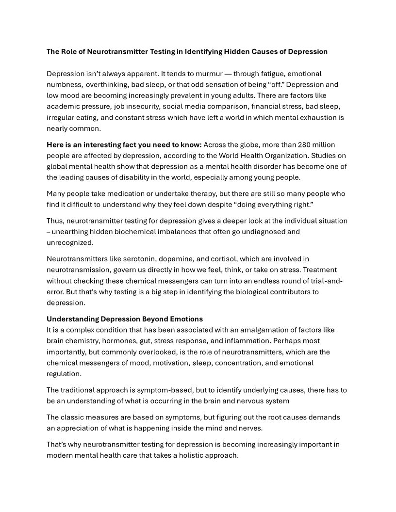 The Role of Neurotransmitter Testing in Identifying Hidden Causes of Depression