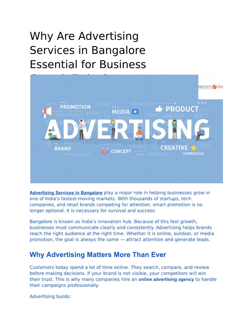 Why Are Advertising Services in Bangalore Essential for Business Growth Today