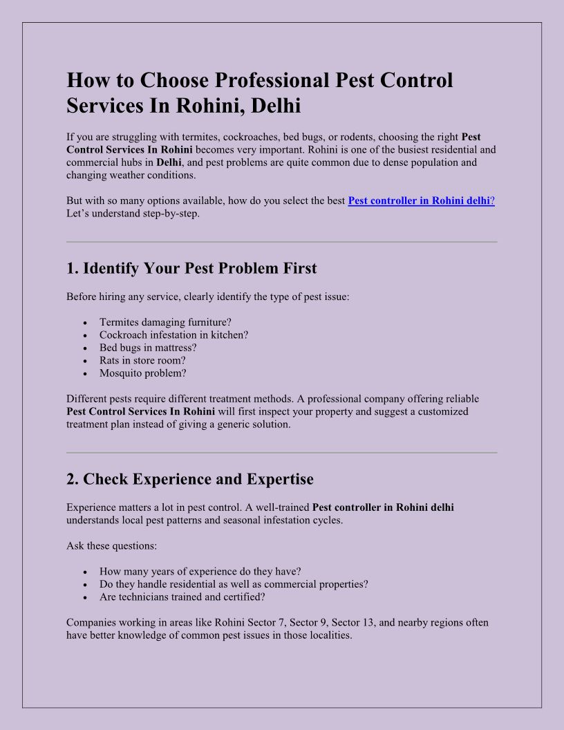 How to Choose Professional Pest Control Services In Rohini