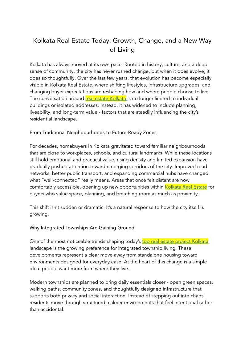 Kolkata Real Estate Today Growth, Change, and a New Way of Living