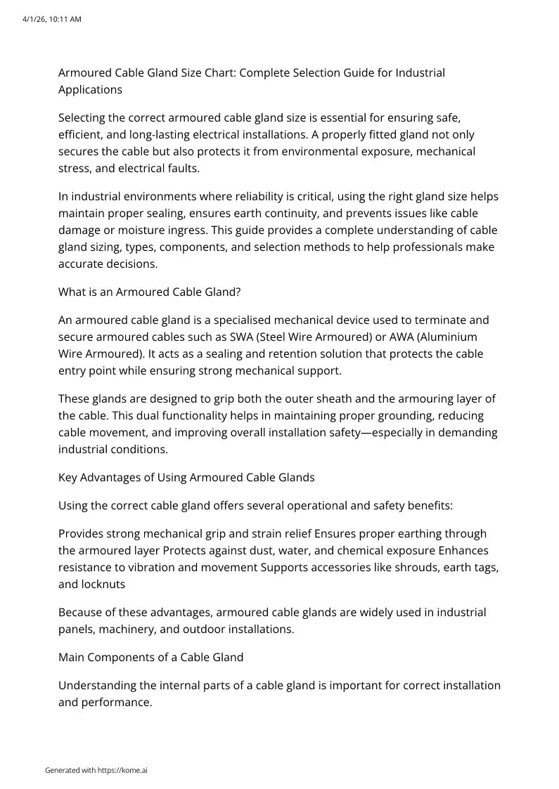 Armoured Cable Gla Exgrip is a trusted name in explosion-proof cable glands and components, supplying industries across the globe.nd Size Chart