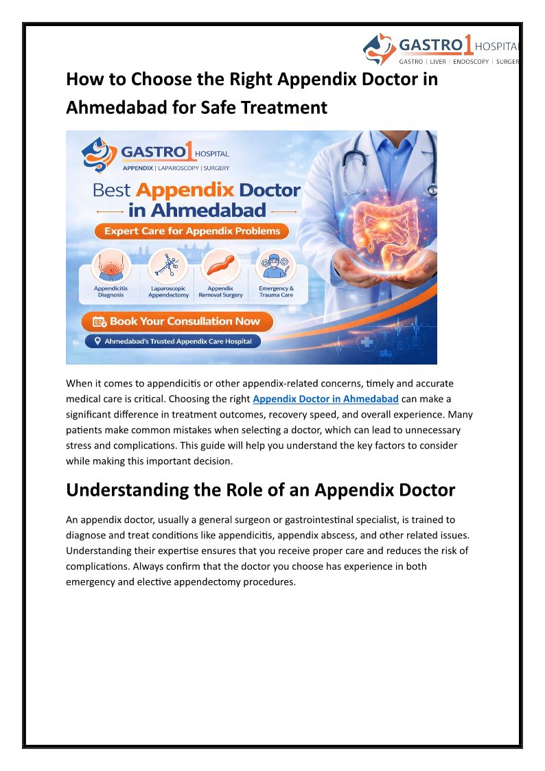 How to Choose the Right Appendix Doctor in Ahmedabad for Safe Treatmen