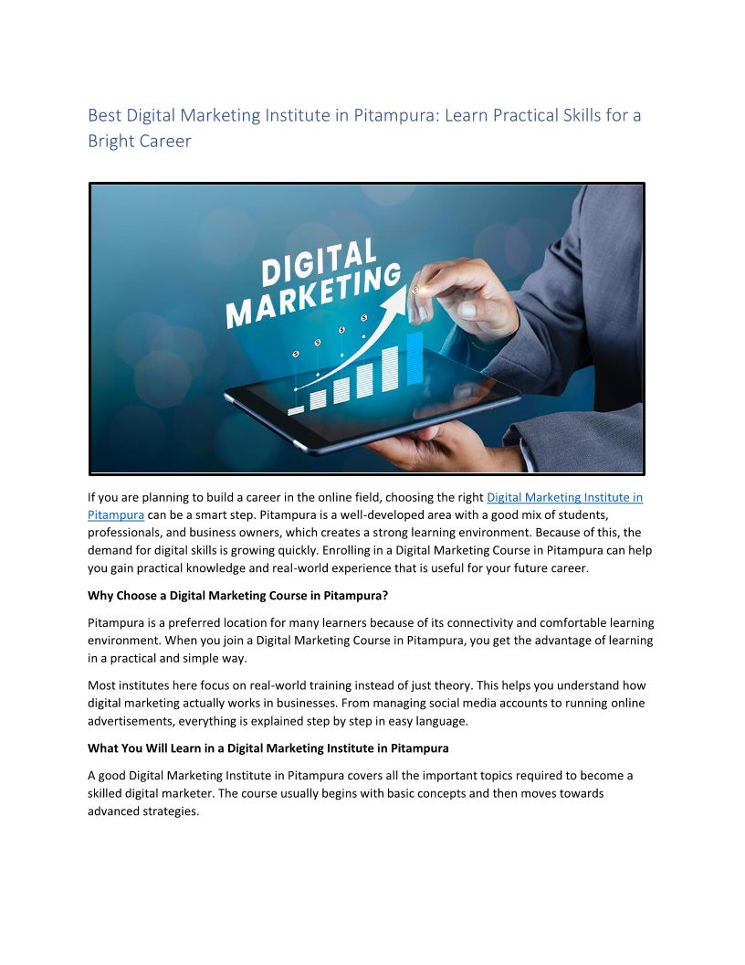 Best Digital Marketing Institute in Pitampura: Learn Practical Skills for a Bright Career