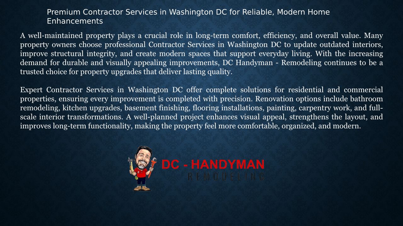 Premium Contractor Services in Washington DC for Reliable, Modern Home Enhancements