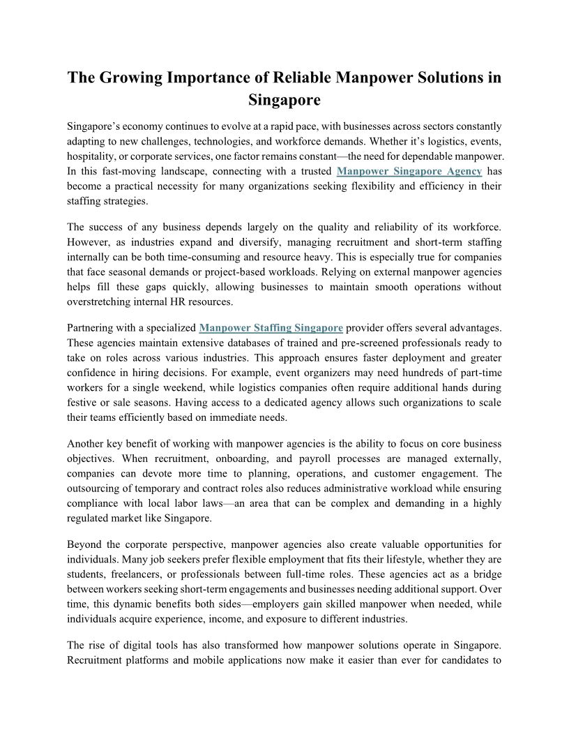 The Growing Importance of Reliable Manpower Solutions in Singapore