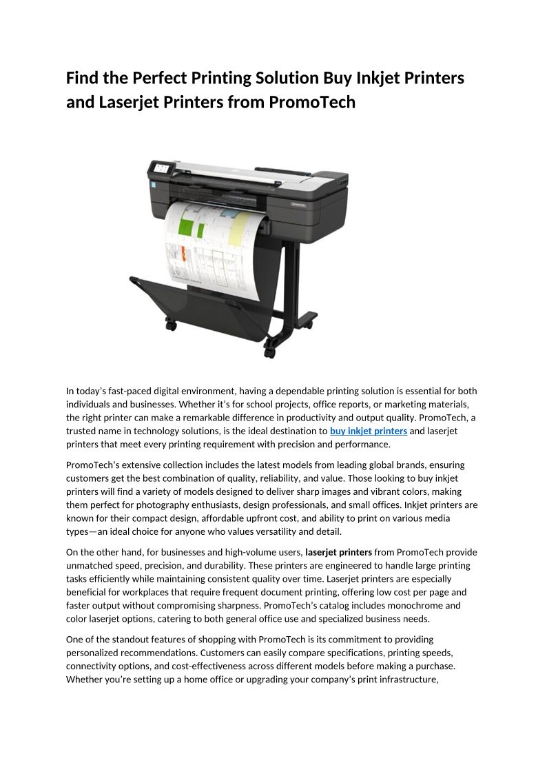 Find the Perfect Printing Solution Buy Inkjet Printers and Laserjet Printers from PromoTech