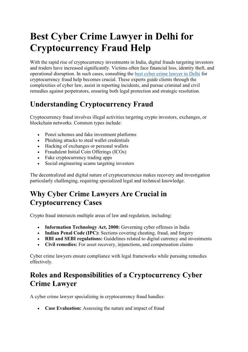 Best Cyber Crime Lawyer in Delhi for Cryptocurrency Fraud Help