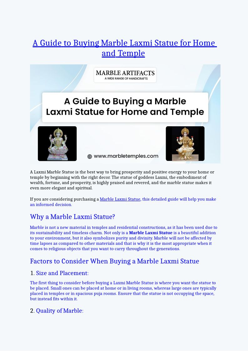 A Guide to Buying Marble Laxmi Statue for Home and Temple