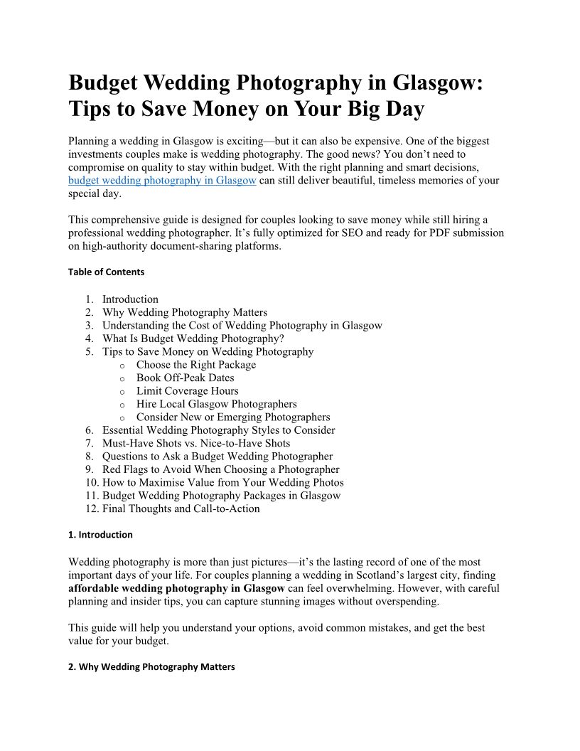 Budget Wedding Photography in Glasgow: Complete Guide to Save Money on Your Big Day