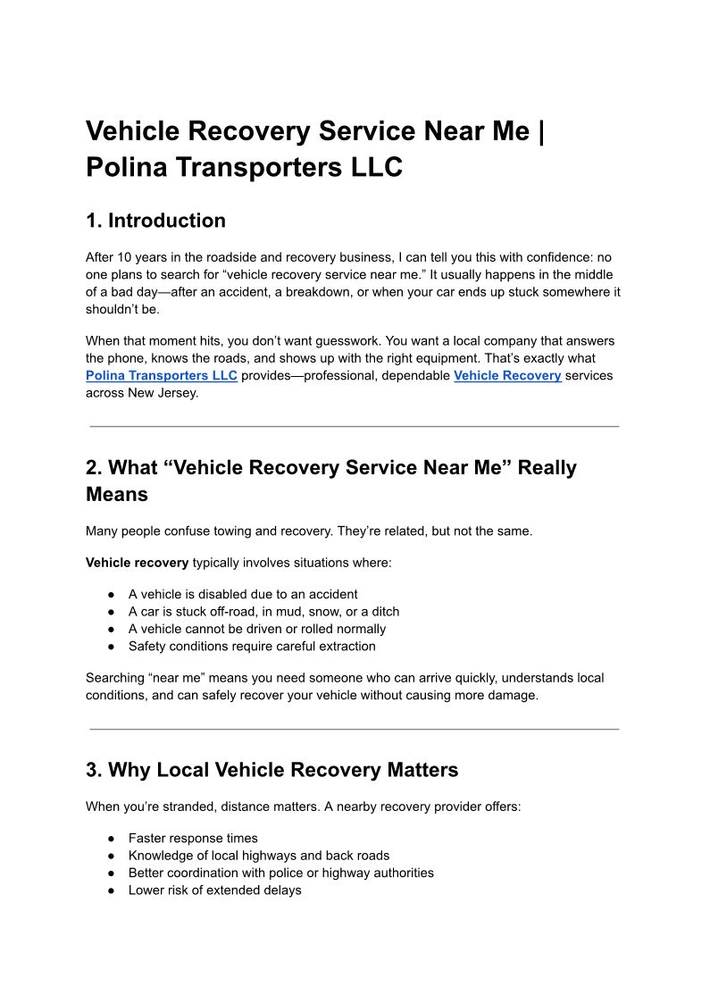 Vehicle Recovery Service Near Me _ Polina Transporters LLC