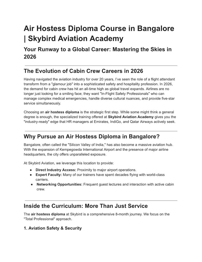 Diploma in Air Hostess & Cabin Crew Training | Skybird Aviation
