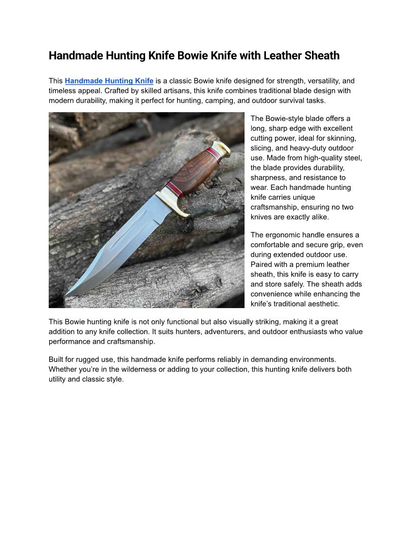Handmade Hunting Knife Bowie Knife with Leather Sheath