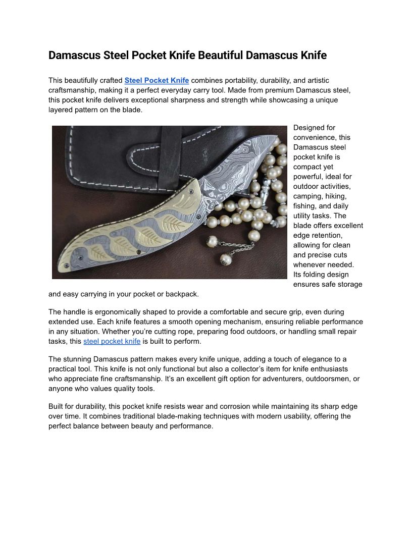Damascus Steel Pocket Knife Beautiful Damascus Knife