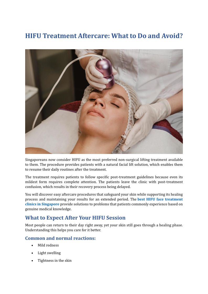 HIFU Treatment Aftercare: What to Do and Avoid?