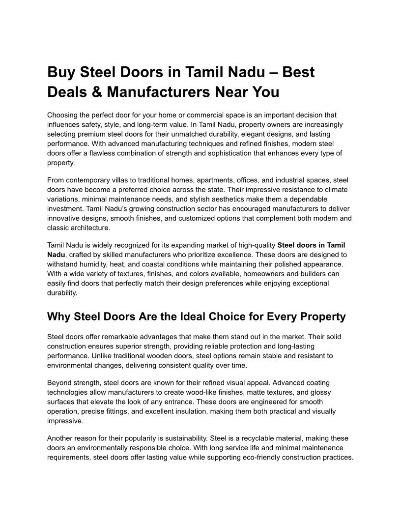 Buy Steel Doors in Tamil Nadu – Best Deals & Manufacturers Near You