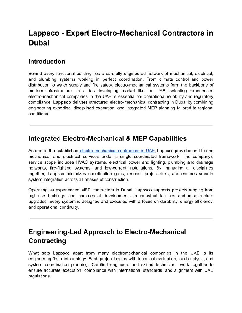Lappsco - Expert Electro-Mechanical Contractors in Dubai