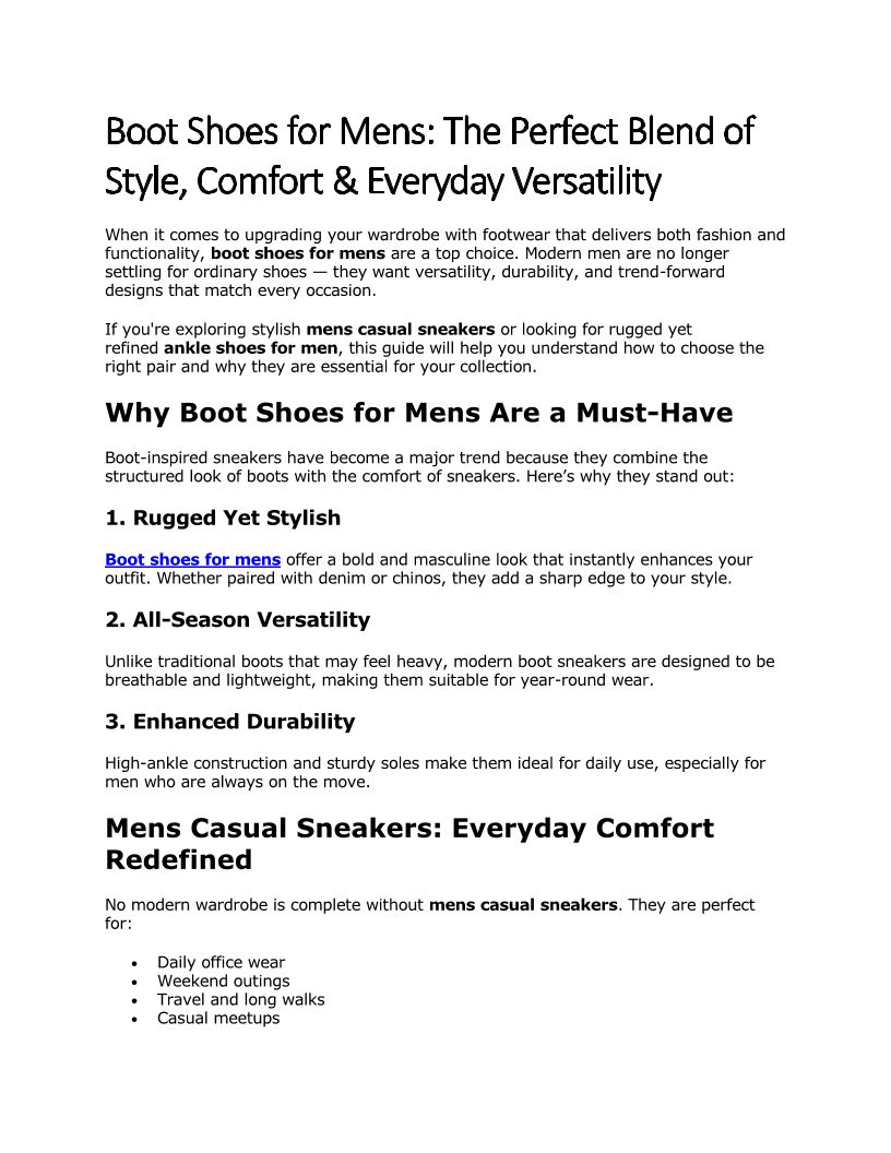 Boot Shoes for Mens The Perfect Blend of Style, Comfort & Everyday Versatility