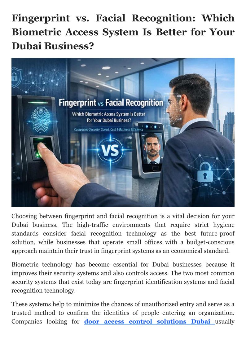 Fingerprint vs. Facial Recognition Which Biometric Access System Is Better for Your Dubai Business