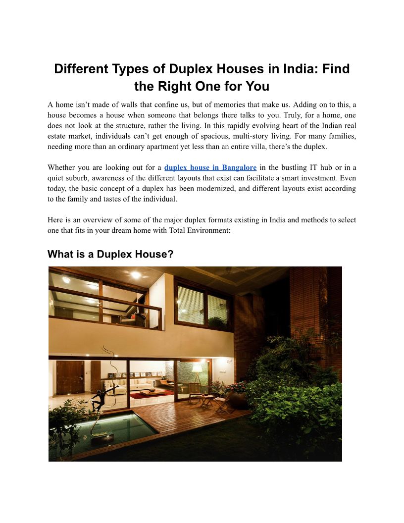 Different Types of Duplex Houses in India_ Find the Right One for You