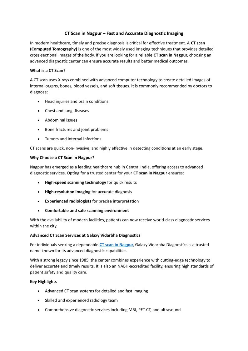 CT Scan in Nagpur – Fast and Accurate Diagnostic Imaging