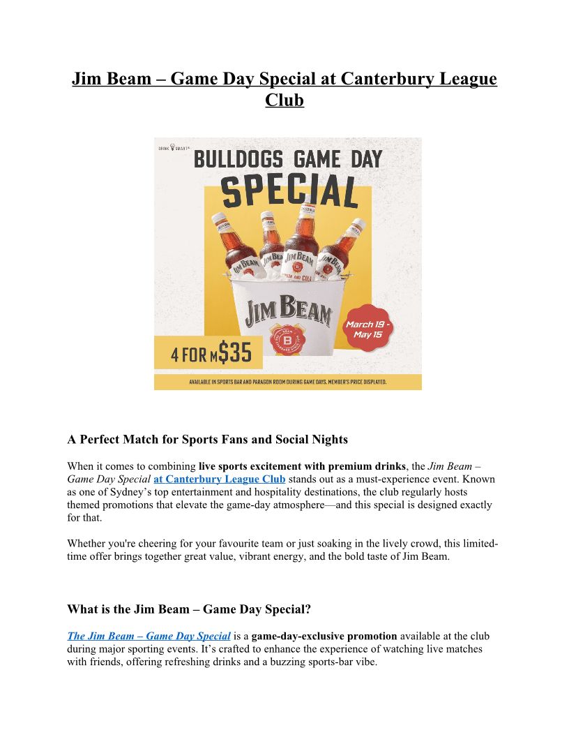 Jim Beam Specials for Sports Fans at Canterbury League Club Belmore