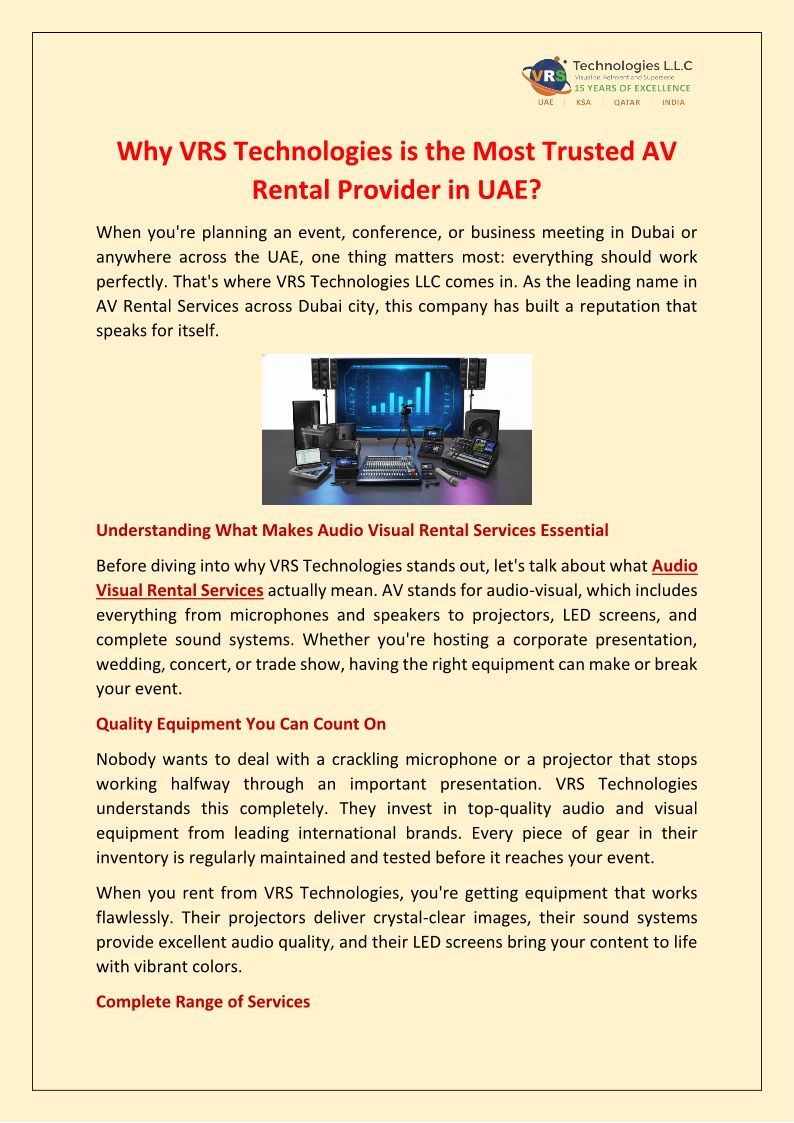 Why VRS Technologies is the Trusted AV Rental Provider in UAE?