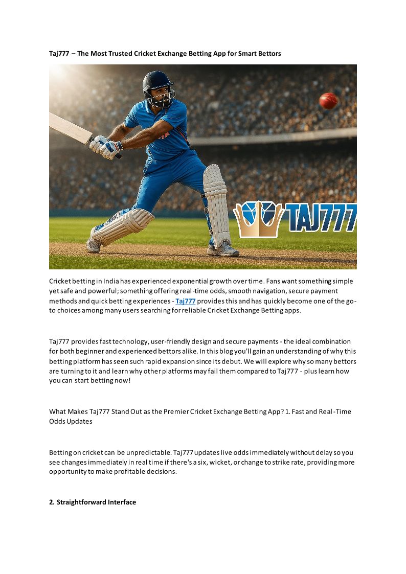 Taj777 – The Most Trusted Cricket Exchange Betting App for Smart Bettors