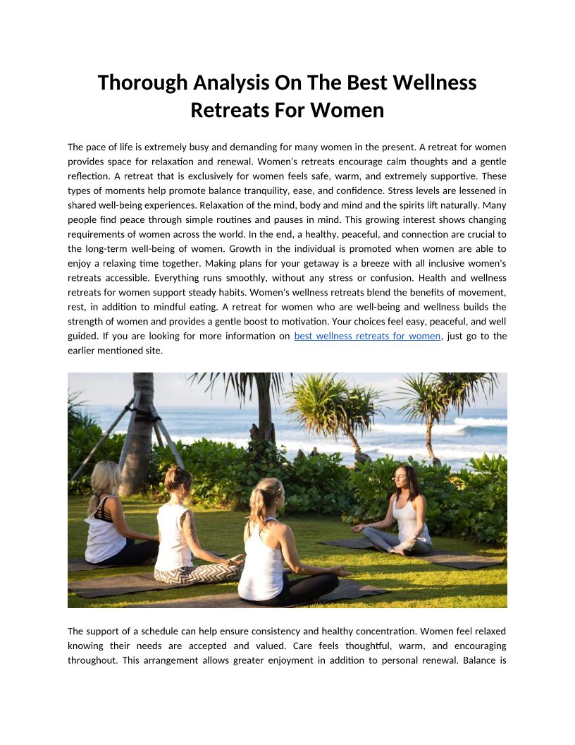 Thorough Analysis On The Best Wellness Retreats For Women
