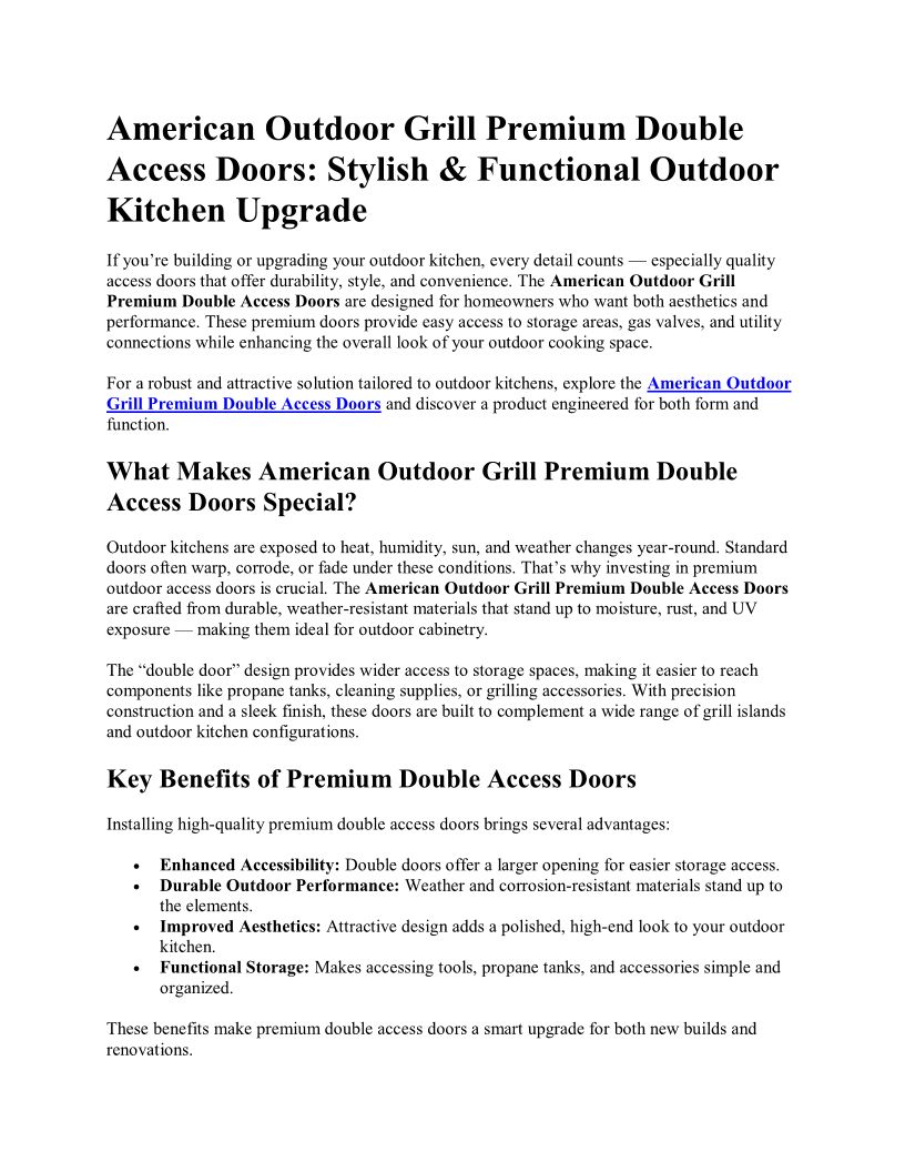 American Outdoor Grill Premium Double Access Doors, Stylish & Functional Outdoor Kitchen Upgrade