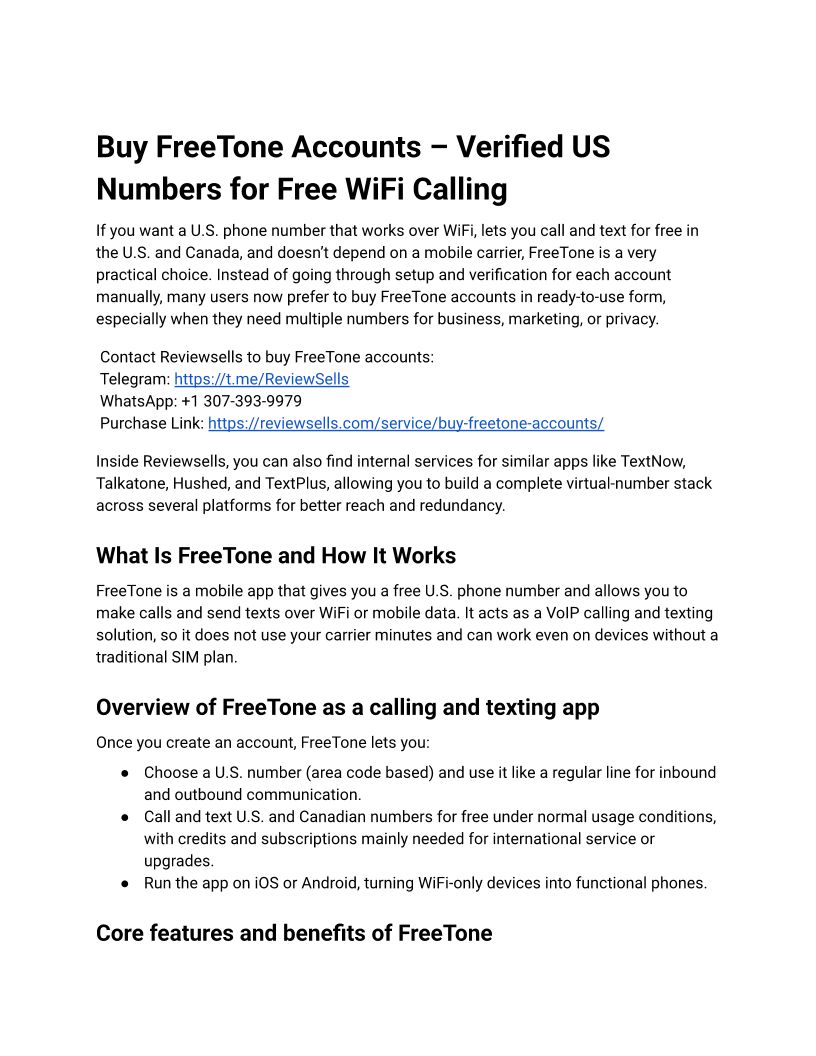 Buy FreeTone Accounts – Verified US Numbers for Free WiFi Calling