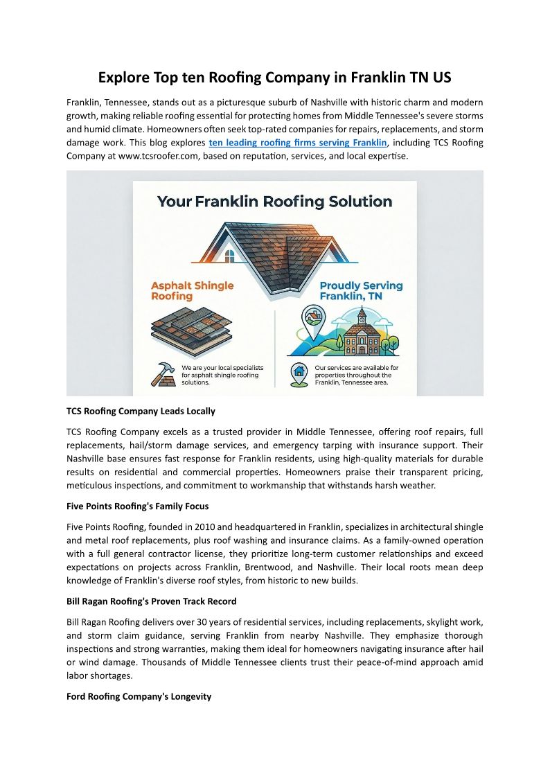 Explore Top ten Roofing Company in Franklin TN US