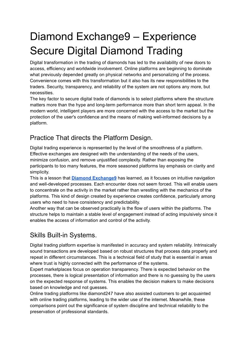 Diamond Exchange9 – Experience Secure Digital Diamond Trading