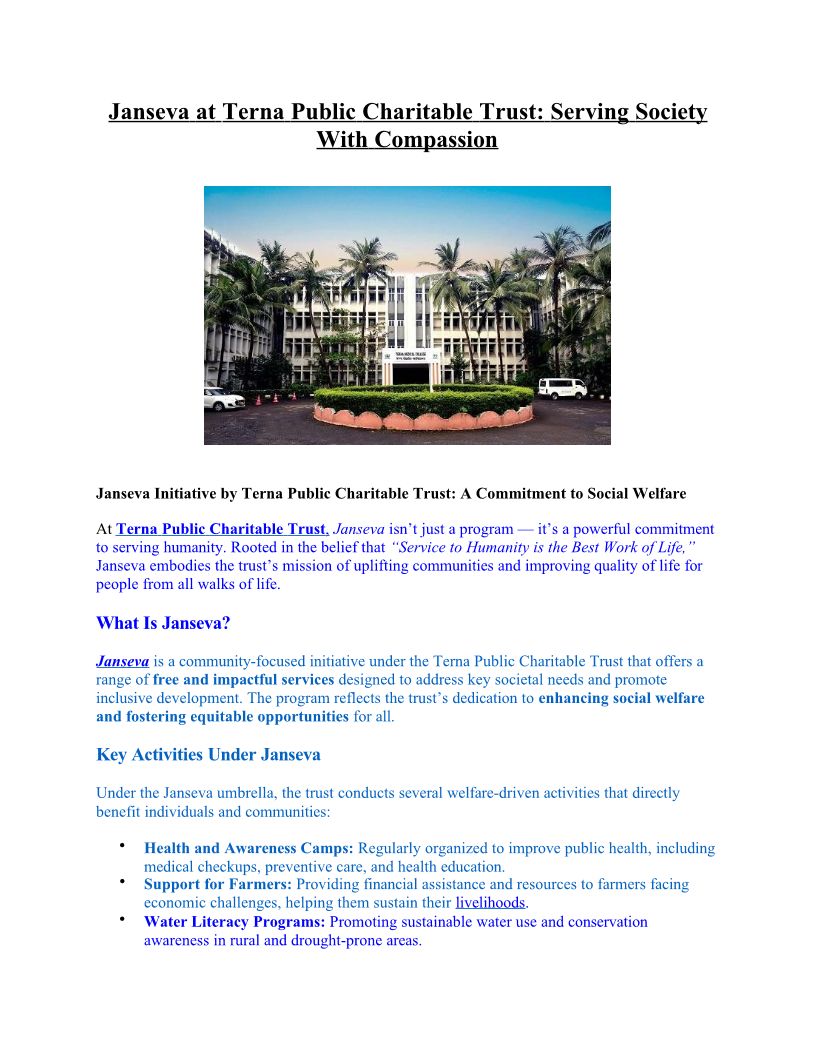 Janseva at Terna Public Charitable Trust: Bridging Gaps Through Social Service