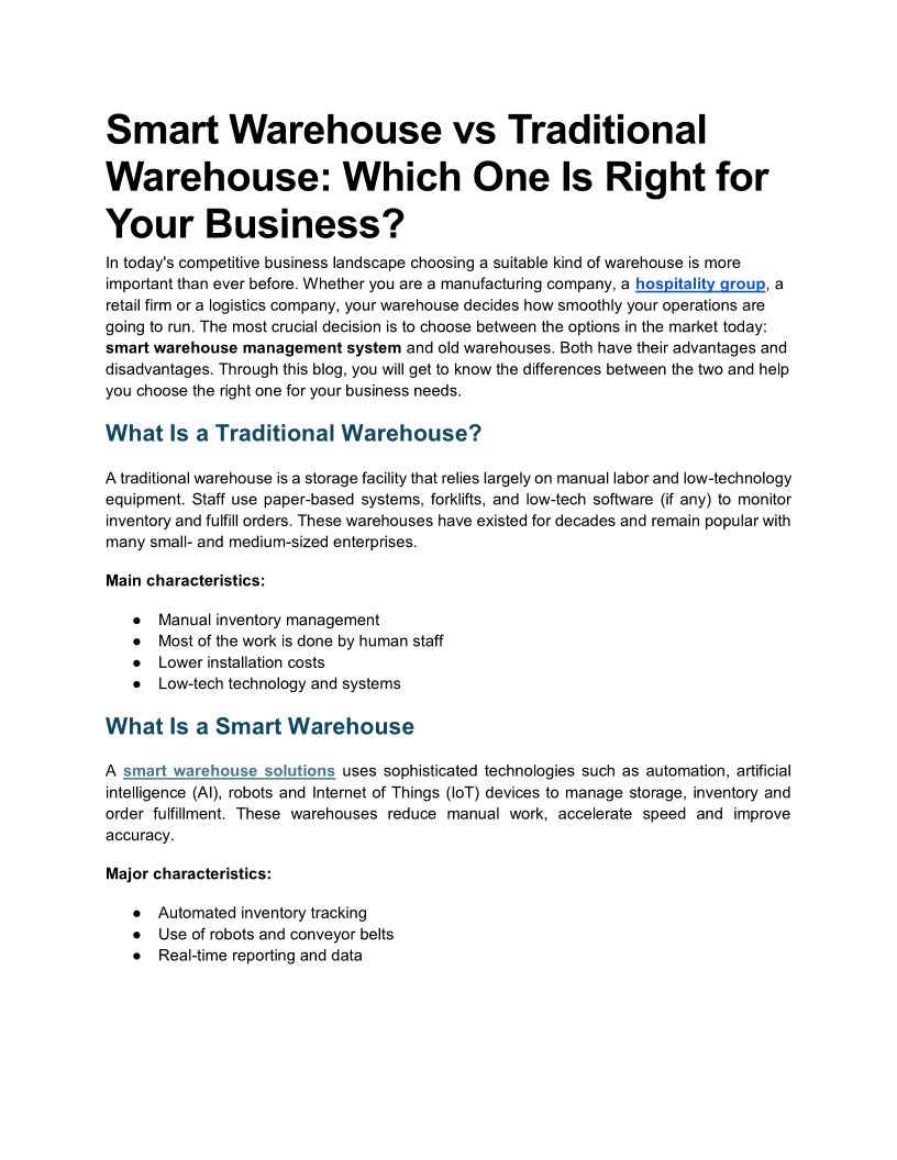 Smart Warehouse vs Traditional Warehouse Which One Is Right