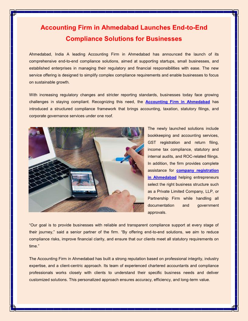 Accounting Firm in Ahmedabad Launches End-to-End Compliance Solutions for Businesses