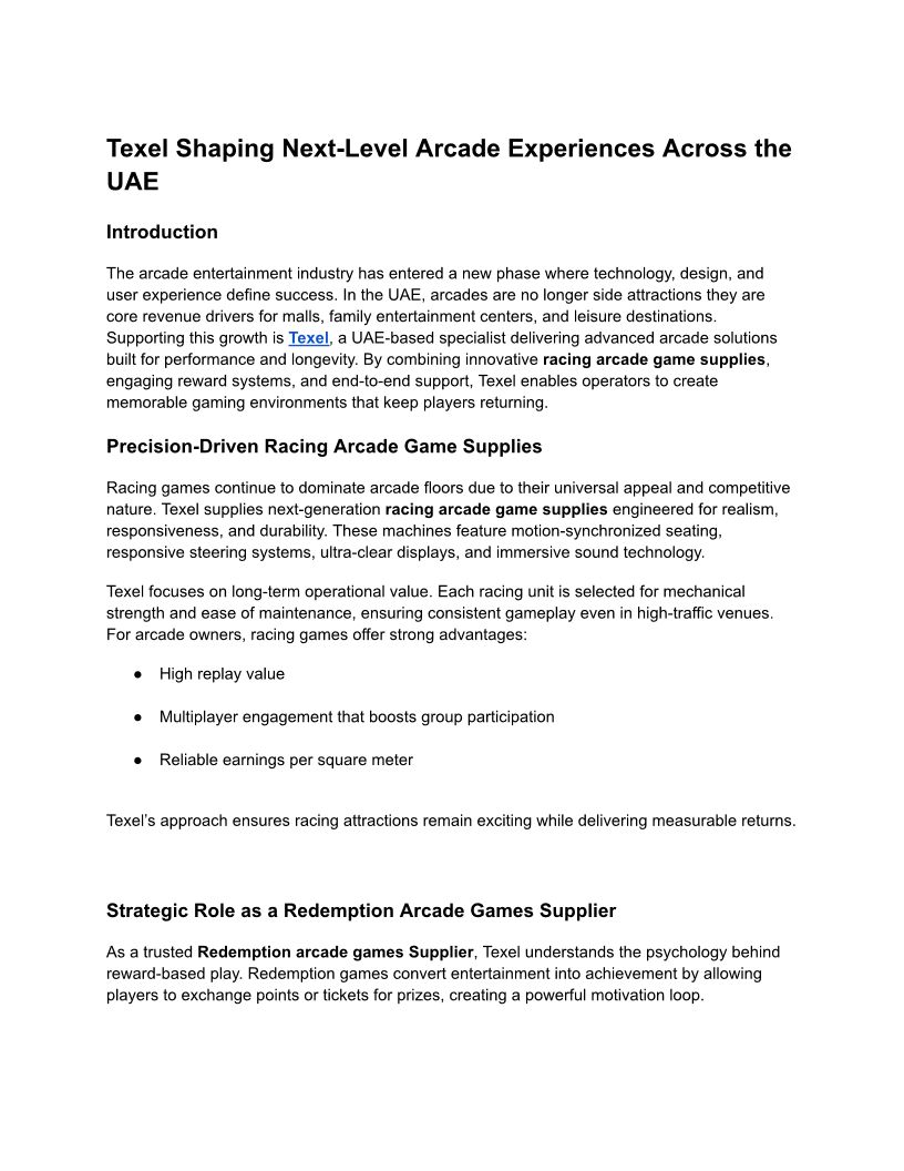 Texel Shaping Next-Level Arcade Experiences Across the UAE