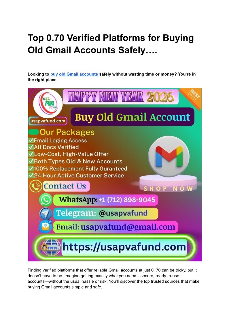 Top 0.70 Verified Platforms for Buying Old Gmail Accounts Safely….