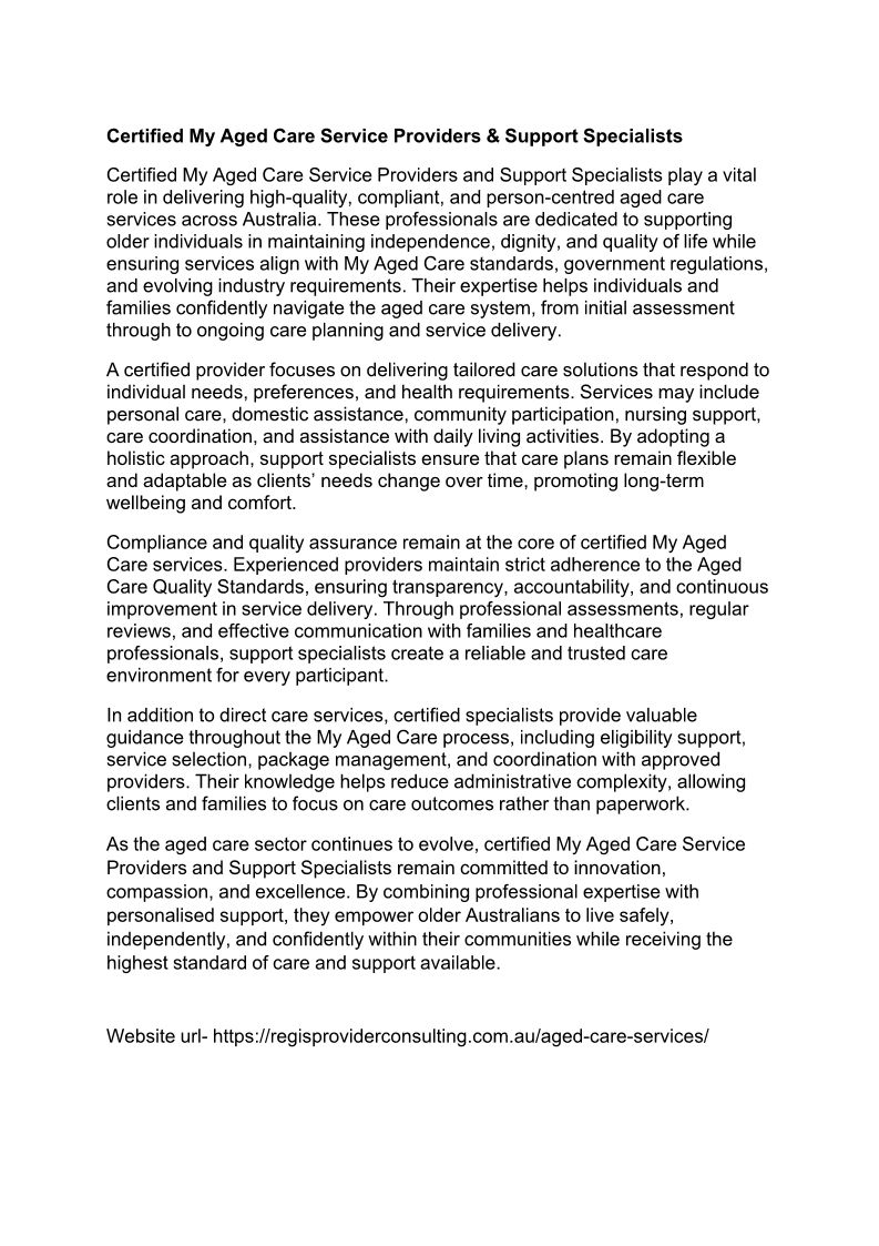 Certified My Aged Care Servi...