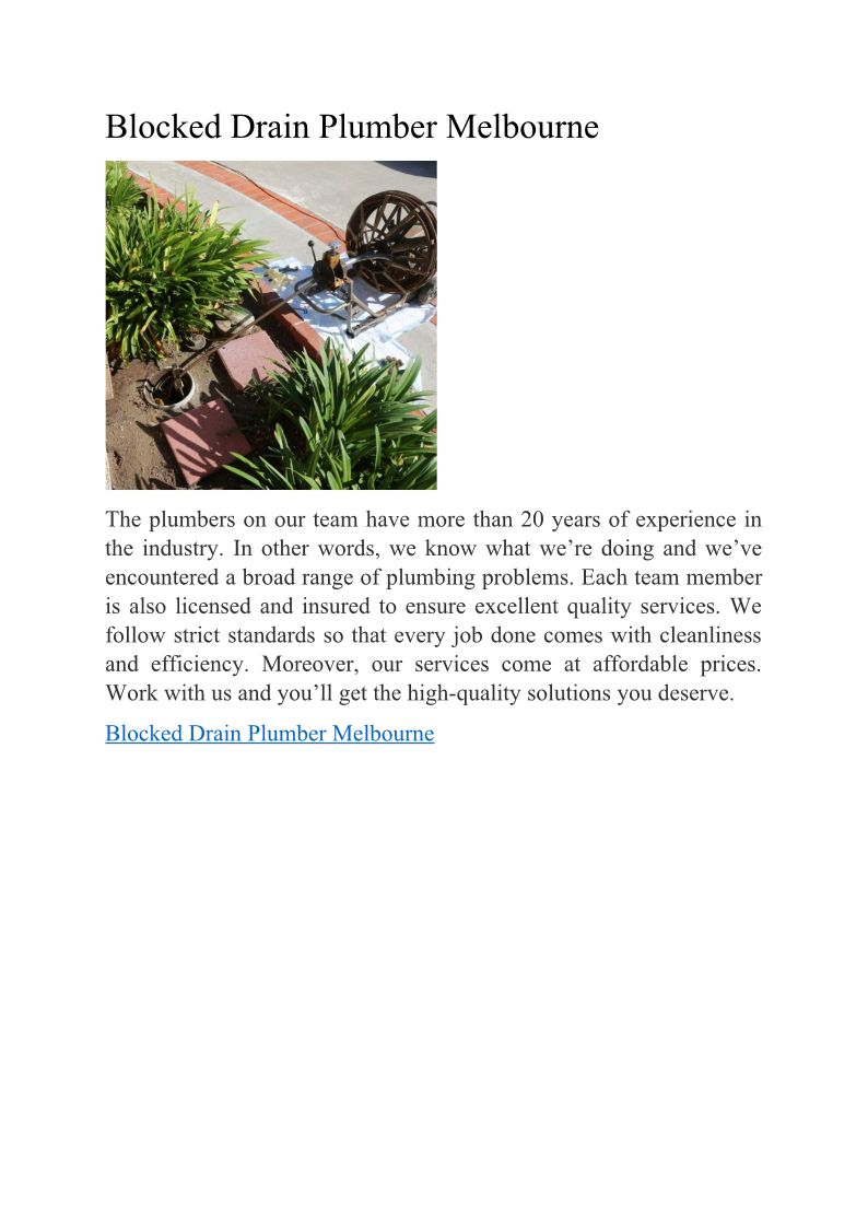 Blocked Drain Plumber Melbou...