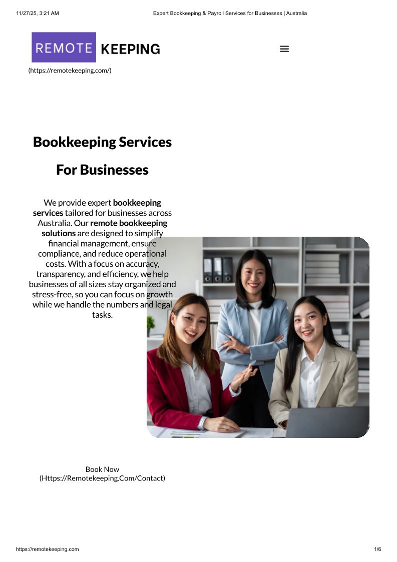 Get reliable bookkeeping and payroll services in Australia. Simplify finances, ensure compliance, and focus on growth with expert https://remotekeeping.com/
